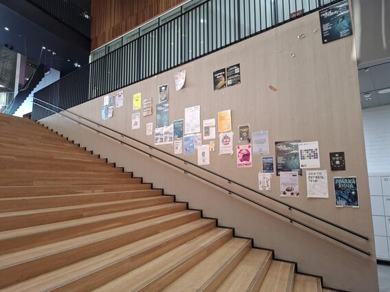 The three wall areas in the Väre building (Otaniementie 14) located on the lobby level and between the lobby and basement levels now serve as noticeboards. These areas may be used in the same way as other noticeboards.